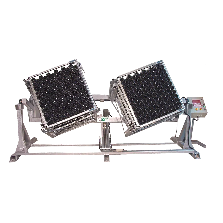 Négykosaras rázógép automatizált remuage-folyamathoz